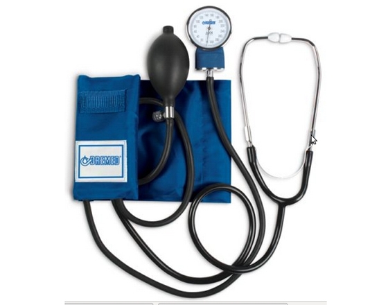 The Bremed Aneroid Sphygmomanometer with Attached Stethoscope is a device to measure blood pressure. This is made of high quality material and helps in taking the blood pressure easily. It has arm cuffs which should be placed at the midpoint between shoulder and the elbow. Besides the arm cuffs there is a long tube, a dial, a bulb and a stethoscope. The stethoscope is used to check the pulse and the pressure can be built using the bulk and the tube. When the pressure is released the blood pressure can be seen on the dial.