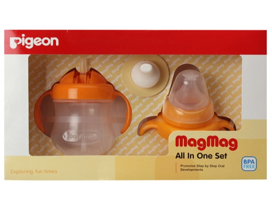 Baby's drinking style changes rapidly as he grows and develops his oral skills. It is important to provide him with a comfortable and smooth transition from breastfeeding to eventually drinking with a straw independently. MagMag Training Cup System is designed to facilitate and enhance the development of baby's drinking skills by allowing a smooth transition from nipple to straw with its interchangeable drinking tops.Mag Mag All-in-One Set is a training cup that comes complete with all the 3 interchangeable tops for ease of training.