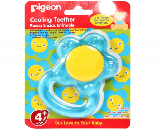 When baby starts to teeth, the teether can be placed in the refrigerator to soothe baby's gums