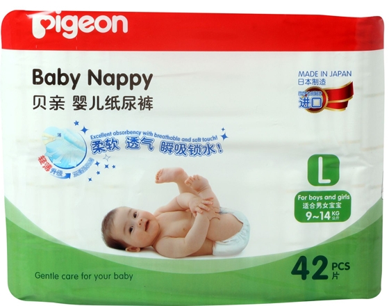 Pigeon Baby Nappies are available in various packets, containing 20, 42, 48 and 54 nappies respectively. These nappies have been especially designed for a baby using extra soft and extra moist fabric. These can be started using for babies starting from age zero.
