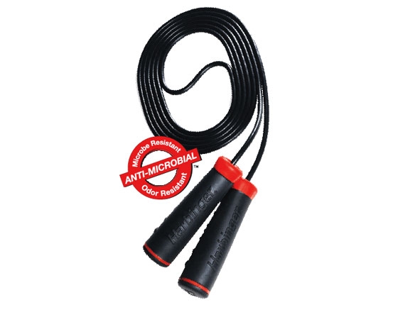 It has a high speed rope handle that are antimicrobial treated to control odour, staining, and deterioration caused by bacteria. Its dual-corded rope will not stretch or lose its shape. Its handle bearings provide a smooth, consistent swing motion and are highly durable. Its dual-injection moulded handles allow for a firmer and more comfortable grip while providing the maximum in control. It is 9 feet in length that can be shortened.